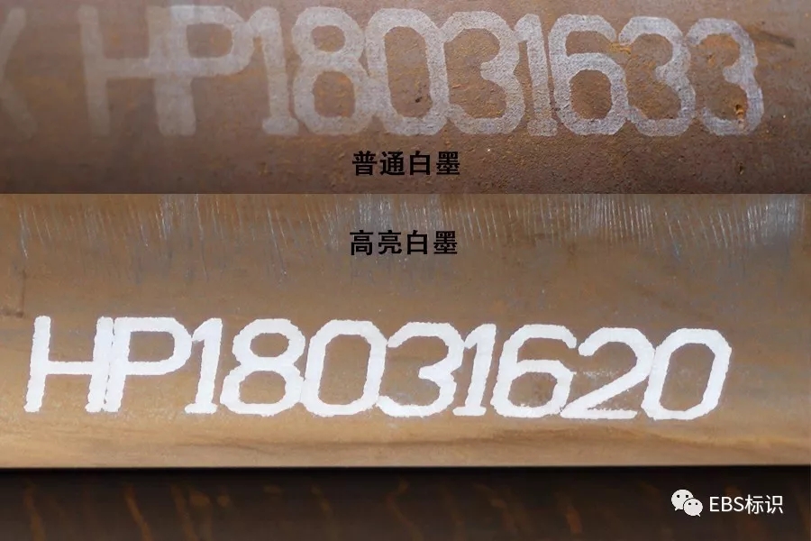 EBS的全新大字符噴碼機高光白墨,白度極高,遮蓋力極佳。它可以在各種深色材料表面,甚至生銹的鋼鐵表面上標記出高清明亮的內容,無需特殊處理即可輕松標記。